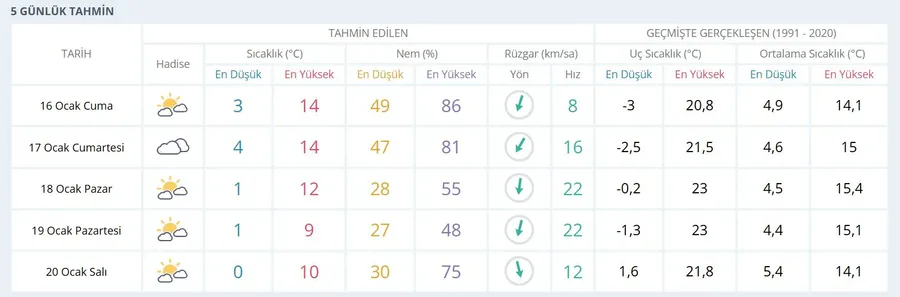 Önümüzdeki 5 gün boyunca Adana’da beklenen hava durumu tablosu şu şekilde
