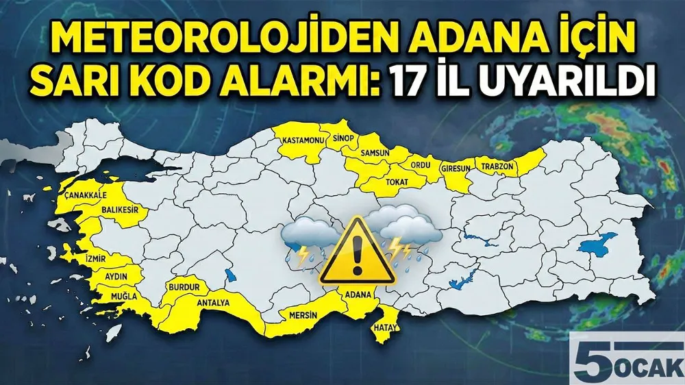 Meteoroloji’nin yayınladığı uyarı haritasında Adana, "potansiyel tehlike" anlamına gelen sarı renkle işaretlendi. Kent genelinde etkili olması beklenen meteorolojik hareketlilik nedeniyle; ani sel, su baskını, yıldırım, yerel dolu yağışı ve ulaşımda aksamalar gibi olumsuzluklara karşı dikkatli ve tedbirli olunması gerektiği vurgulandı.