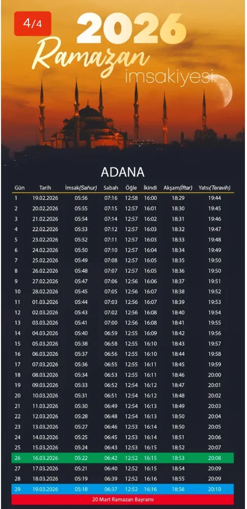 Adana için 2026 Ramazan ayı imsak ve iftar saatleri belli oldu! Adana iftar vakti ne zaman? Sahur saat kaçta? Güncel Adana imsakiyesi ve manevi iklimi hakkında detaylar yazımızda.