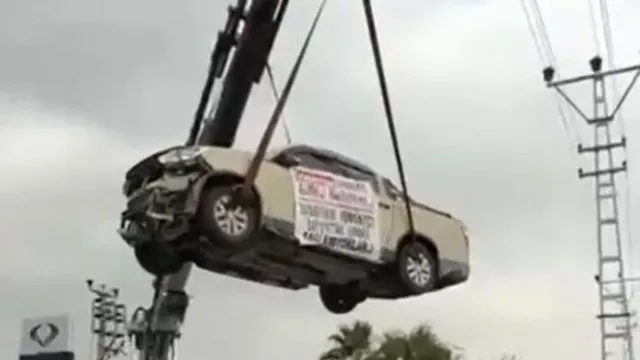 ADANA’da satın aldığı sıfır kamyonetin hatalı çıktığını öne süren kişi, üzerine 'Satarken gösterilen memnuniyet, satıştan sonra sağlanmıyor' yazılı pankart astığı aracı, bayinin önünde vinçle kaldırarak sergiledi.