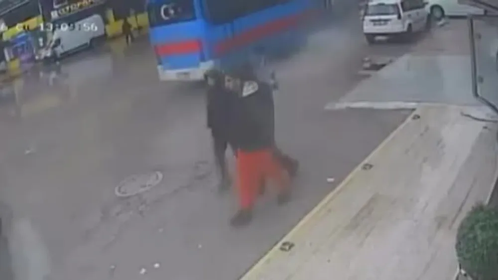 O sırada seyir halinde olan otobüs, motosiklete çarpmadan son anda durabildi. Sürücü, saniyelerle otobüsün altında kalmaktan kurtuldu.