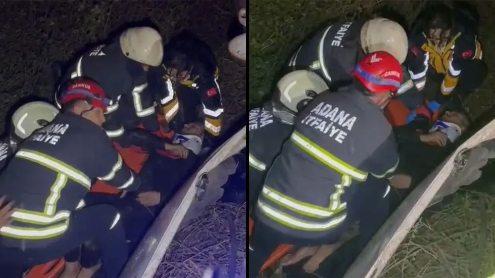Adana'da otoyolda kontrolden çıkarak şarampole yuvarlanan otomobildeki 2 kişi yaralandı.