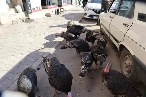 Adana’nın Kozan ilçesinde hindilerin çarşıda gezdirilerek satılması ilginç görüntüler oluşturdu.