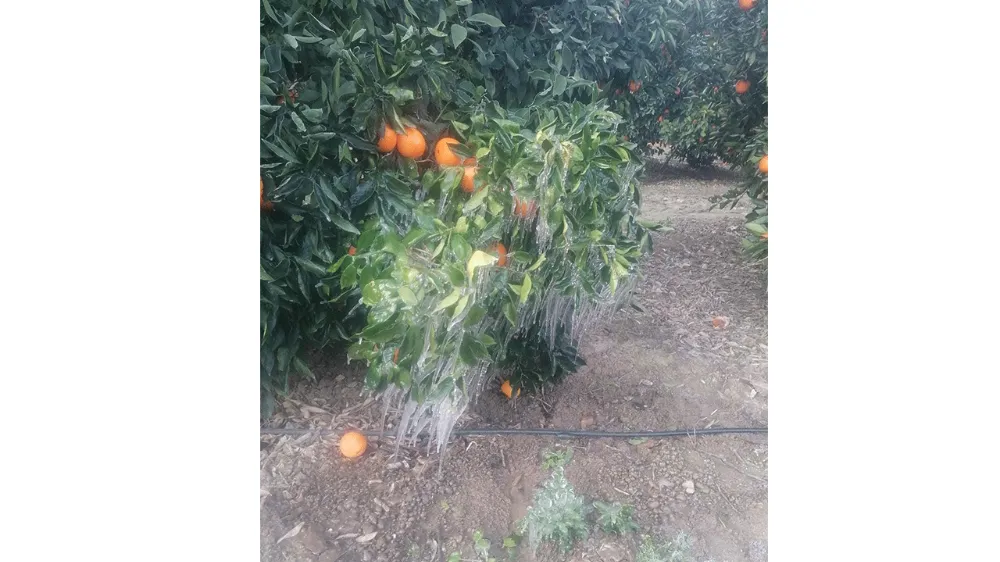 Türkiye’nin en önemli tarım üretim merkezlerinden Adana’da son iki gündür yaşanan soğuk ve don nedeniyle merkez Yüreğir ilçesine bağlı Havutlu Mahallesi’ndeki bazı portakal ağaçları buz tuttu.