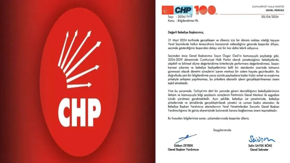 Belediye Başkanlarına gönderilen yazıda Genel Merkez onayı olmadan Üst Düzey Yönetici, İştiraklere Yönetici, Uzman Kadro ataması ve Belediye Başkan Yardımcısı ataması yapılmaması, ayrıca hiçbir anket firması ile anlaşma yapılmaması bildirildi.